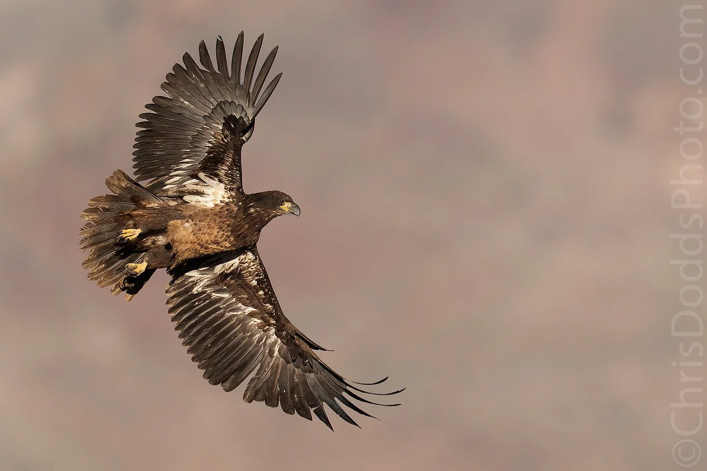 So we settled in, let the desert sunrise warm our backs, and waited. The ponds quieted. The excitement softened into anticipation. Then, just when it felt like maybe this bird would fly the wrong way, the eagle lifted from its perch and banked into the light—broad wings catching the sun, powerful, confident, and completely at home. It gave us a full, elegant show, gliding across the scene with the softly blurred Chupadera Mountains providing the perfect clean backdrop. Those subtle pastel tones behind that wild, elemental power… it just doesn’t get much better.